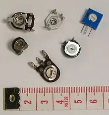 Tambien pueden ser petados: estan realizados con un arrollamiento toridal de alambre resistivo con un cursor que mueve el patin sobre el mismo.