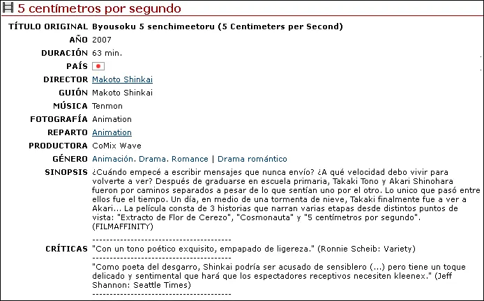 5 Centimetros Por Segundo