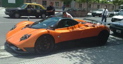 Y a propósito de Pagani, el Zonda F en color naranja caramelo que la semana pasada anduvo por Punta del Este, acaba de cruzar el charco y esta mañana fue visto por la gente de Taringa en Puerto Madero. (Gracias a Ignacio S. por el dato)
