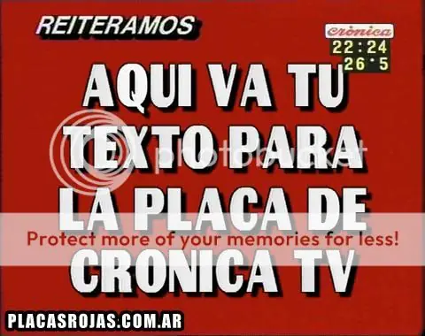 Permite crear nuestras propias placas de crónica TV, ingreando nuestro texto en la columna de la izquierda de la página.