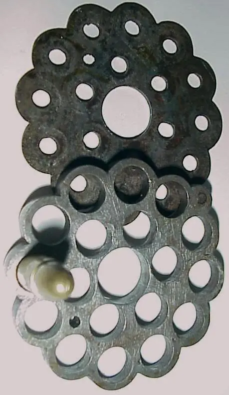 Dos cartuchos "exteriores" y uno "interior" quedaban enrasados con los 3 cañones de 3 pulgadas, su sistema de apertura era tipo "top break",similar al empleado por la firma Smith&Wesson. El cilindro constaba de dos anillos conectados entre sí,lo que permitía almacenar los cartuchos de una forma segura e introducirlos todos al mismo tiempo como si de un cargador de pistola se tratase.En la parte trasera del armazón lleva incorporado un seguro de percutor.