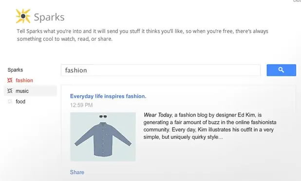 Una vez añadidos los temas de interés a Sparks, el motor nos sugerirá contenidos relevantes para que podamos compartirlos e iniciar conversaciones con nuestros círculos de amigos de la red social.