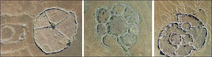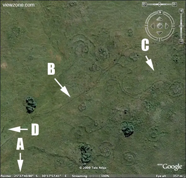 La imagen al inicio de la página es una vista cercana de unos pocos cientos de metros del paisaje tomado con google-earth. La región es muy remota y los “círculos” a menudo se enfrentan con los agricultores locales, que suponen que fueron hechas por algunos pueblos indígenas en el pasado, pero extrañamente, nadie se molestó en preguntar acerca de quien podría haberlo hecho o que edad tiene.