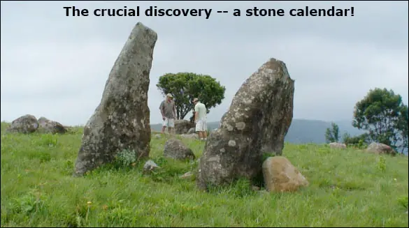 Una vez que las ruinas fueron examinadas, los investigadores estaban ansiosos por colocar la civilización perdida en una perspectiva histórica. Las rocas estaban cubiertas con una pátina que parecía muy vieja, pero no había elementos suficientes para la datación por carbono 14, fue entonces un descubrimiento casual reveló la edad del sitio, y envió un escalofrío por la espina dorsal de los arqueólogos y los historiadores!