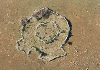Las estructuras circulares de piedra, son evidentes a partir de este punto de vista, aunque no sea visible desde el suelo. Tenga en cuenta que hay muchos caminos muy largos que se conectan con grupos de estructuras circulares y se aleja por estos “caminos” que viajan por muchos kilómetros.