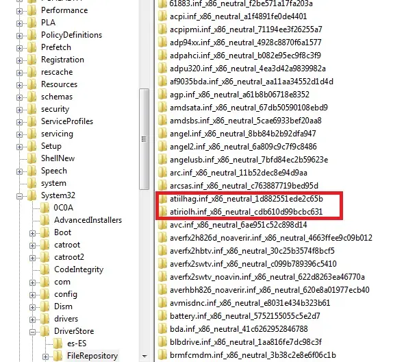 Ahi apareceran una larga lista de drivers en carpetas, hay 2 carpetas que comienzan con ati....asi que las selecionamos y borramos.(Solo a las 2 carpetas que dicen atiilhag.inf_X86_neutral_xxxxxxxxxxx y atiriolh.inf_X86_neutral_xxxxxxxxxxx)