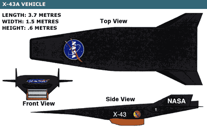 2- X-43A Scream-Jet alcanzo la velocidad de 7,546 km/h (9,8 mach)