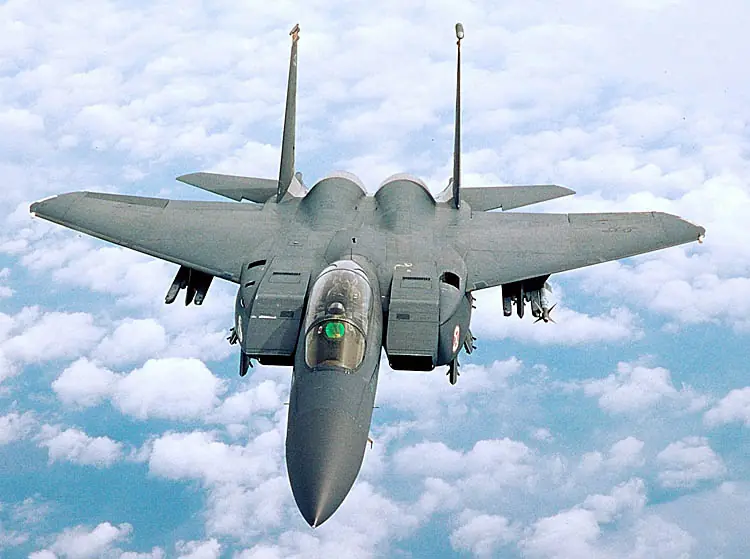 El McDonnell Douglas F-15 Eagle es un caza táctico todo tiempo bimotor diseñado por la compañía estadounidense McDonnell Douglas (desde 1997 integrada en Boeing) para ganar y mantener la superioridad aérea en el combate aéreo. Está considerado uno de los cazas modernos más exitosos con más de 100 victorias sin ninguna pérdida en combate aéreo cerrado.1 2 Después de revisar las propuestas, la Fuerza Aérea de los Estados Unidos seleccionó el diseño de McDonnell Douglas en 1967 para satisfacer las necesidades del servicio para un caza de superioridad aérea puro. Su primer vuelo se realizó en julio de 1972,3 y entró en servicio en 1976. El Eagle también fue exportado a Israel, Japón y Arabia Saudí. A pesar de ser concebido originalmente como un caza puro, el diseño resultó ser lo suficientemente flexible para que posteriormente se desarrollara un derivado biplaza de ataque todo tiempo, el F-15E Strike Eagle, que entró en servicio en 1989. La Fuerza Aérea de los Estados Unidos pretende mantener en servicio al F-15 Eagle hasta el año 2025