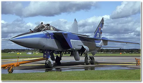El Mikoyan MiG-31 (en ruso: МиГ-31, designación OTAN: Foxhound) es un caza diseñado por la oficina de diseño soviética Mikoyan para la misión de interceptación aérea.