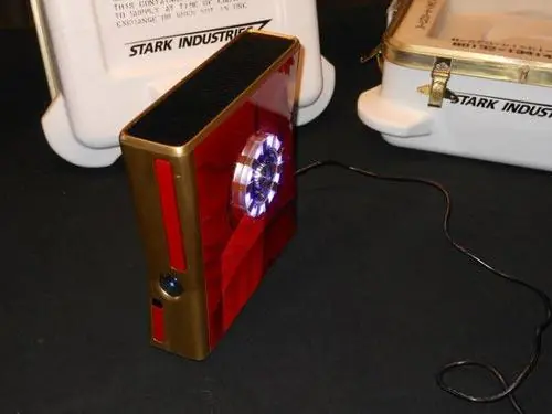 Pero el reactor Arc con sus luces LED no son todo, Bongo también ha creado un maletín de Industrias Stark para la consola y para el control (suponemos que es una forma de imitación del maletín visto en Iron Man 2).