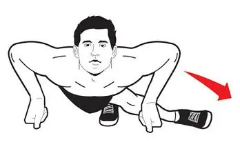 Asume la posición de lagartija y baja tu cuerpo hasta casi tocar el piso. Lleva al lado tu pierna derecha tan cerca como te sea posible a un ángulo de 90º sin doblar la rodilla. Haz una pausa y regresa la pierna a la posición inicial. Sube nuevamente tu cuerpo, baja y repite con la pierna izquierda.