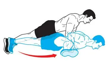 Asume la posición de lagartija pero adelanta tus pies hacia tus manos hasta que tus rodillas están dobladas en un ángulo de 90º y tu cadera ligeramente más alta que tu cabeza. Baja hacia la izquierda hasta casi tocar el piso rotando tu cuerpo y doblando tus codos. Haz una pausa, levántate y rota hacia el otro lado. Haz otra pausa y lleva tus piernas hacia atrás hasta regresar a la posición inicial. Eso es una repetición.
