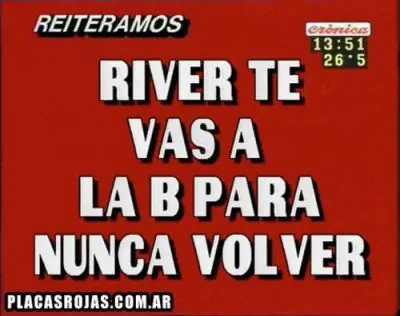 Creo (que la gran mayoria) quiere a riBer fuera de LA PRIMERA DIVISIÓN del futbol argentino