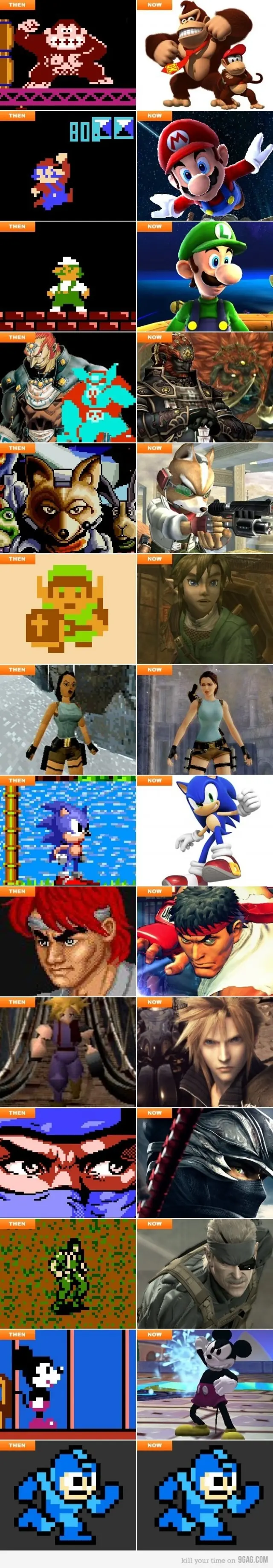 Para los que quieran conocer en detalle cómo se veían algunos títulos míticos cuando apenas nacieron, aquí pueden ver un impresionante listado de personajes de videojuegos con sus versiones de antes y las de hora, de manera de poder analizar los cambios más importantes que tuvieron durante todo este tiempo.