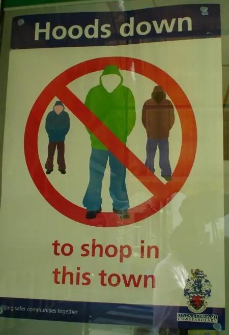 Si llevas capucha debes quitartela antes de entrar a comprar en esta tienda.