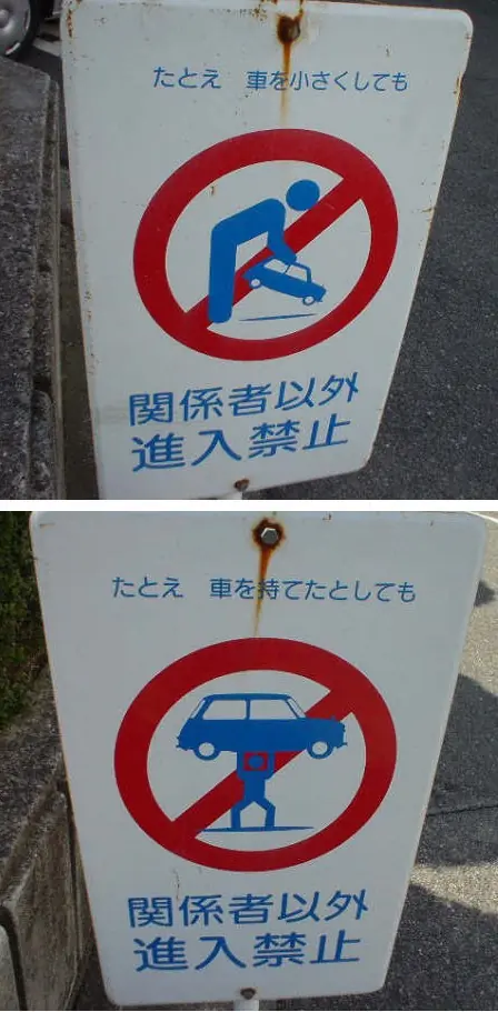 Estos carteles japoneses indican que esta prohibido robar, pero lo muestran