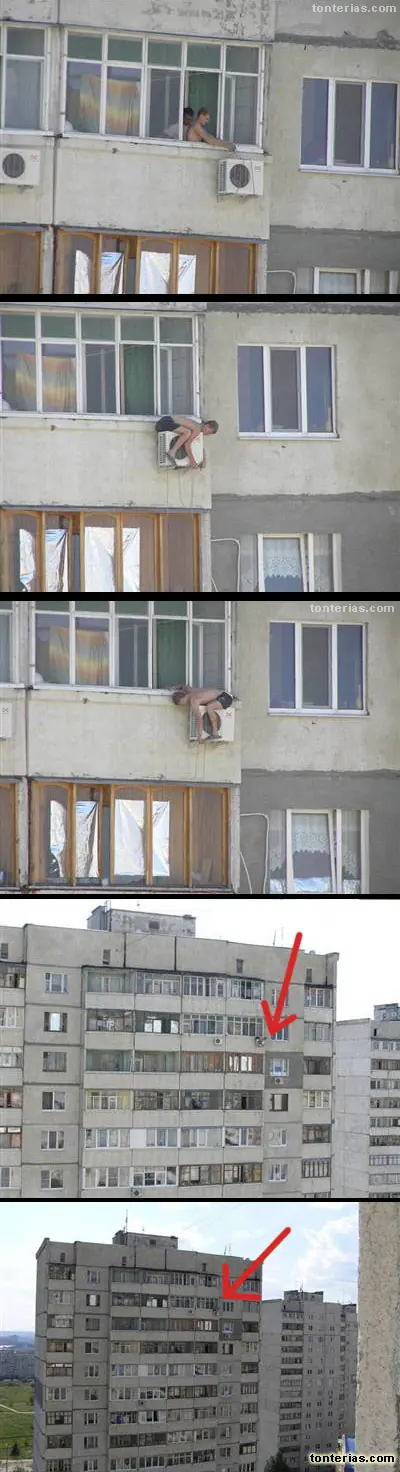 Estos trabajadores temen muy poco por su vida instalando el aire acondicionado de esta forma jejejeje