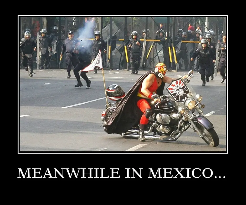 No bueno aquí esta el gran ídolo de México, el único que si va a hacer justicia, miren que el solo contra 20 policías, y se ve que el wey caga dinero porque esa moto no cualquiera.