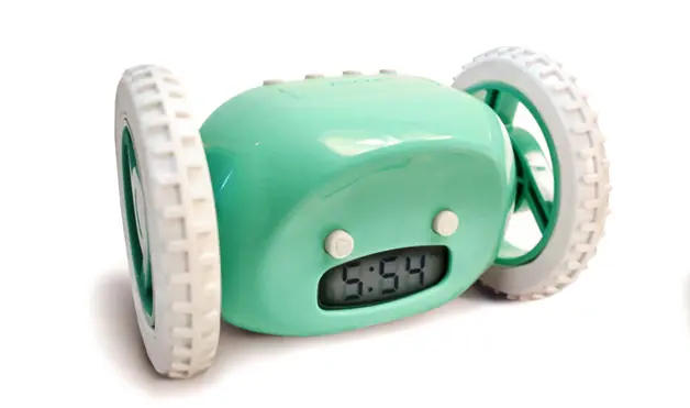 No hay excusa para despertarse tarde, con este desagradable invento. Tan pronto como se activa la función de “snooze”, Clocky salta de nuestra mesita de noche y comienza a moverse por el suelo buscando un lugar para esconderse. Por supuesto, sin parar de sonar. Nada como jugar al escondite con nuestro despertador para sacar del letargo al mayor de los dormilones. La garantía, eso si, no cubre los posibles daños por arrojamiento contra la pared que podamos ocasionarle tras encontrarlo.