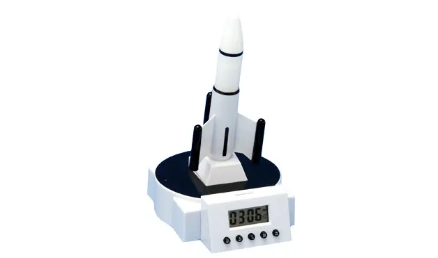 El despertador Rocket Launcher hace realmente un”lanzamiento” desde nuestra cama. Cuando se activa la alarma se dispara un cohete desde la plataforma de lanzamiento, y la única forma de apagarlo es localizar al condenado cacharro allá donde se encuentre y colocarlo de nuevo en su base..