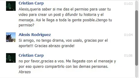 También quiero mandarle un Saludo a Alexis por la buena Onda y por permitirme difundir su historia.Es admirable y deja muchas frases para pensar.