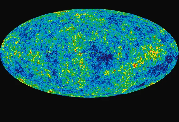 Diferencias en la temperatura de la radiación cósmica de fondo observadas por la sonda WMAP.