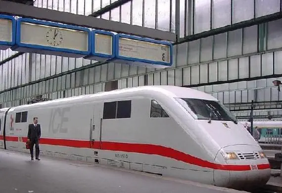 dijo:Los conocidos trenes de alta velocidad ICE (InterCityExpress) circulan predominantemente en Alemania, pero también se pueden ver en los países vecinos de Austria, Dinamarca y Suiza. Actualmente el sistema consta de 259 trenes en cinco distintas configuraciones. A diferencia del sistema francés TGV o del japonés Shinkansen, en el sistema ICE las vías y señalizaciones no fueron diseñadas junto a los vehículos, sino que éstos se adaptaron a las infraestructuras ferroviarias preexistentes. Los trenes pueden alcanzar los 300 km/h solo en algunos tramos de la red ferrovial y su máximo de 330 km/h no es factible en las vías alemanas, pero en Francia se pueden alcanzar los 320 km/h.
