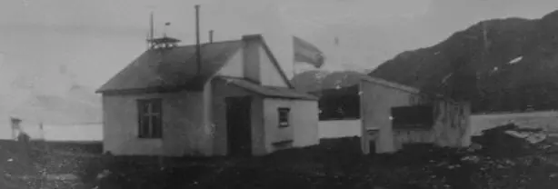Estación meteorológica Argentina en Grytviken (capital de las islas ), se ve claramente la bandera nacional - 1923