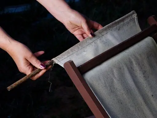 Una vez hecho lo anterior, debemos introducir una barra de madera por el hueco de los extremos para conseguir que la hamaca quede estirada. Por el mismo hueco, introduciremos también la soga que nos servirá para colgarla.