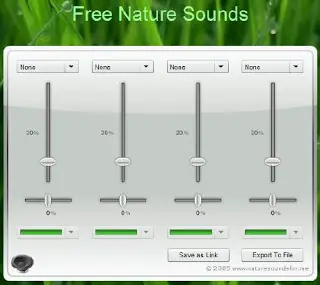 Naturesoundsforme es una aplicación on-line gratuita para generar sonidos de la naturaleza, para luego exportarlos a un archivo .wav y escucharlo mientras estás leyendo o meditando o simplemente por diversión.