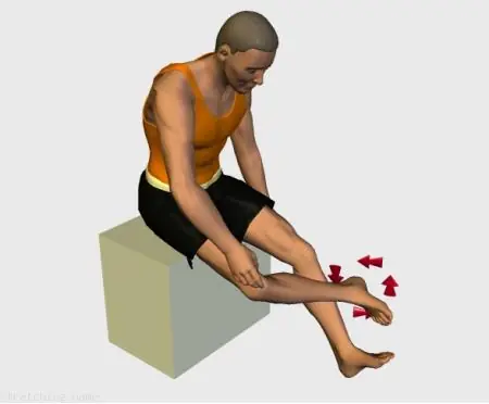 Sentados, haremos movimientos de rotación del tobillo en uno y otro sentido.