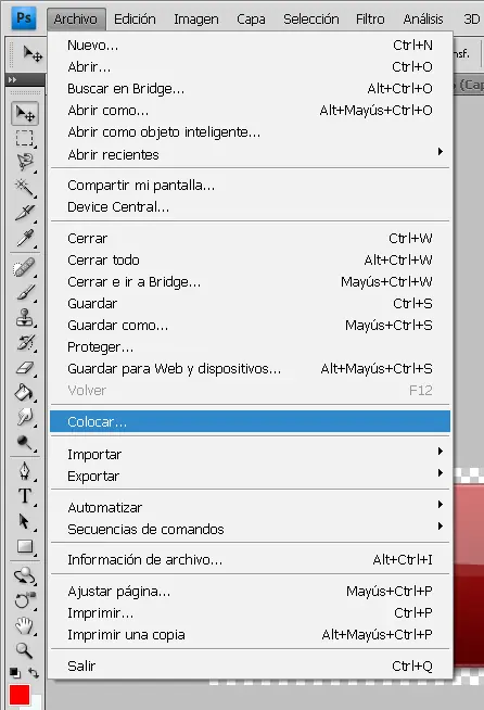 Ahora vamos a agregar una imgen a nuestro menú.. para eso haremos lo siguiente Archivo -> colocar..