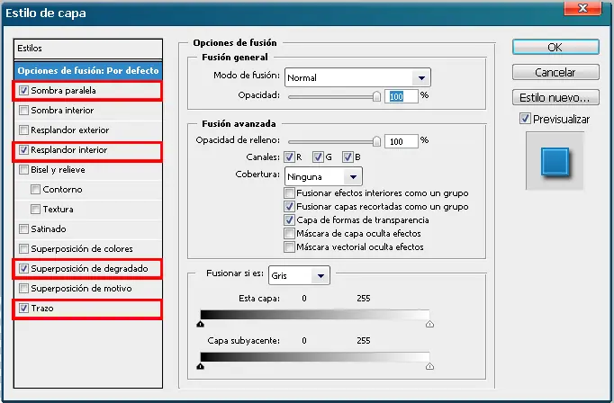 Nos va a salir un cuadro.. mi estilo tenia estas opciones marcadas pero vos podes marcar las que quieras...