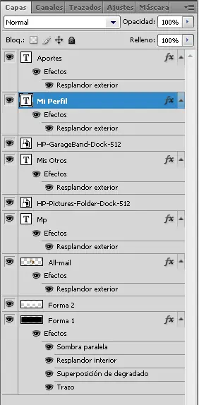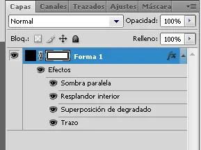 Capas:Se va a ver asi.. con 1 solo elemento llamado forma 1 y los efectos que esta forma tenga.