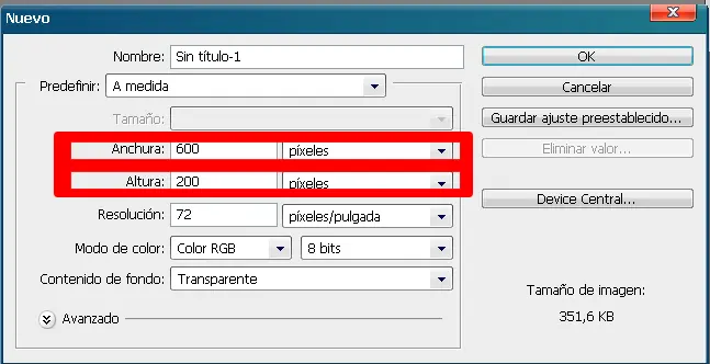 cuando nos aparece el cuadro ponemos las medidas indicadas en la imagen y hacemos clic en aceptar.