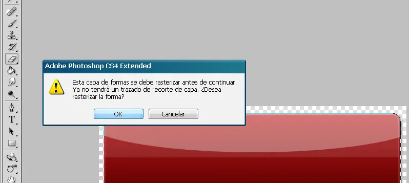 Una vez seleccionada vamos a seleccionar la herramienta Borrador para poder rasterizar la forma(es decir que la podamos editar luego)
