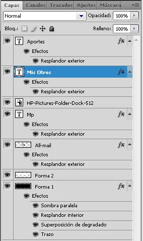 Una vez colocada le podemos dar efectos, en mi caso le agregue resplandor exterior vos podes ponerle lo que quieras.. ademas le agregue el texto.
