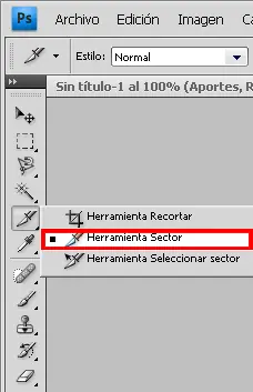 Vamos a seleccionar la herramienta SECTOR para dividir la imagen