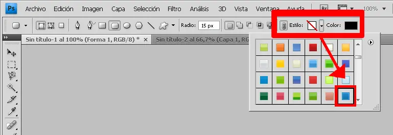 Para darle un estilo en especial a nuestro menú vamos a ir a la parte superior de la pantalla y seleccionar donde dice "Estilo" un estilo en especial.. el que mas te guste.. en mi caso elegi este con degradado y borde.. El color que esta al costado por ahora no interesa.. después lo vamos a modificar.
