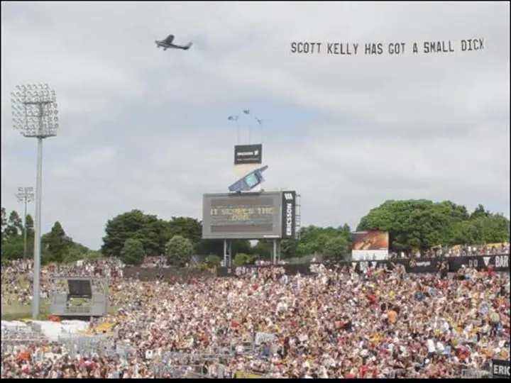 Traducido dice: "Scott Kelly tiene un pene pequeño"