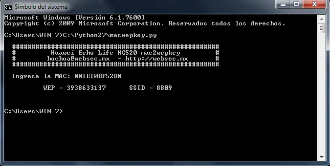 Va de nuevo.... Primero instalas el programa Python... Te debe crear una carpeta en tu disco duro C: Python27 ahi pones el Archivo Script ( mac2wepkey.py ) ahora,, abre ms-dos ahi busca la carpeta de Python27... una vez abierto el simbolo del sistema pegas esto: Ingresa la mac .. listo