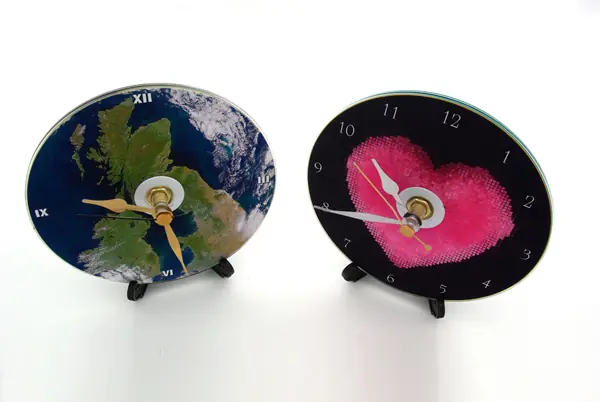 Una buena idea para darle uso al mecanismo de un disco duro viejo, es incorporandole un reloj barato, te quedaría algo así, para ponerlo sobre tu escritorio.