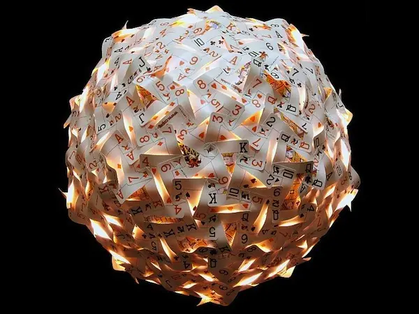 Algo muy elaborado, pero que queda muy bien, una lampara hecha a base de cartas.