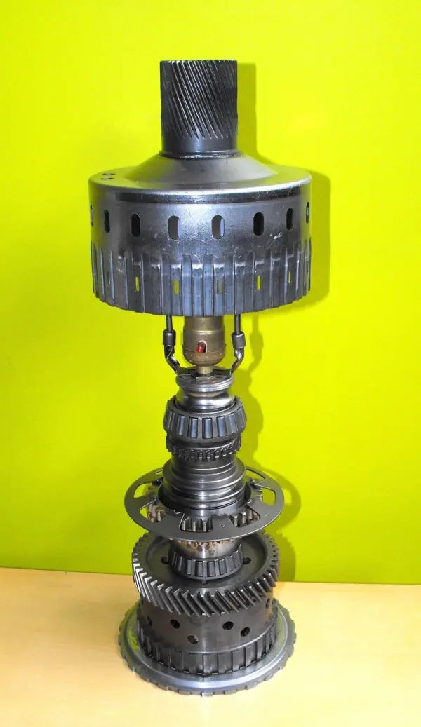 Si tienes engranes de transmision y demas piezas mecánicas aqui esta una buena idea para usarlas como lampara.