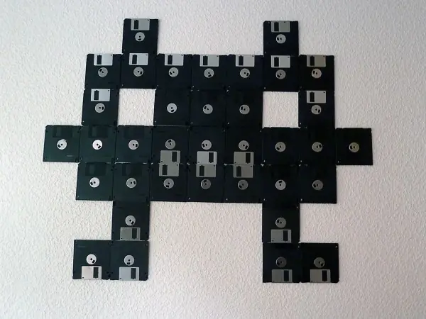 Para decorar la casa, con figuras 8-bits, dale uso a aquellos diskettes que tienes arrumbados xD.