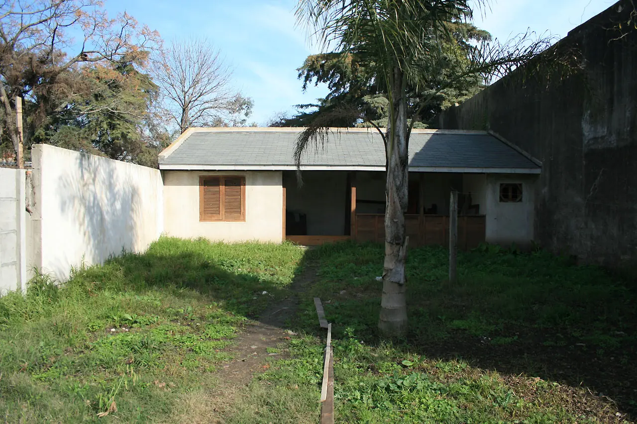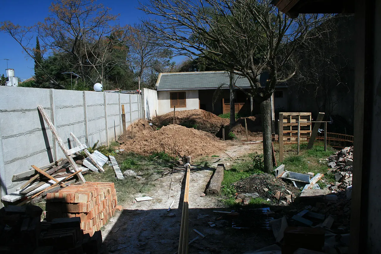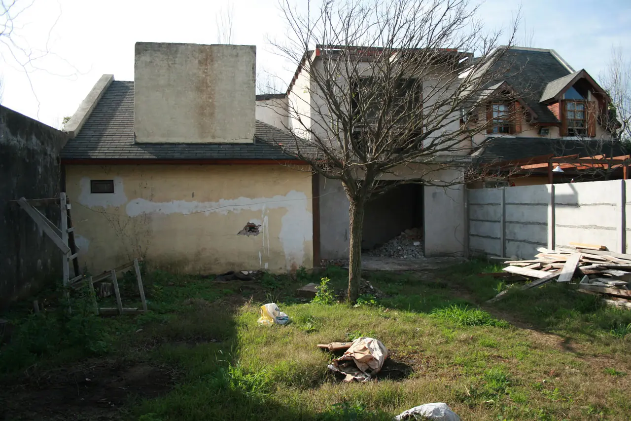 5) Lo mismo mirando a la construcción. Acá se puede ver el sauce electrico que también moveríamos. El jardín?. Qué jardín? Un desastre.