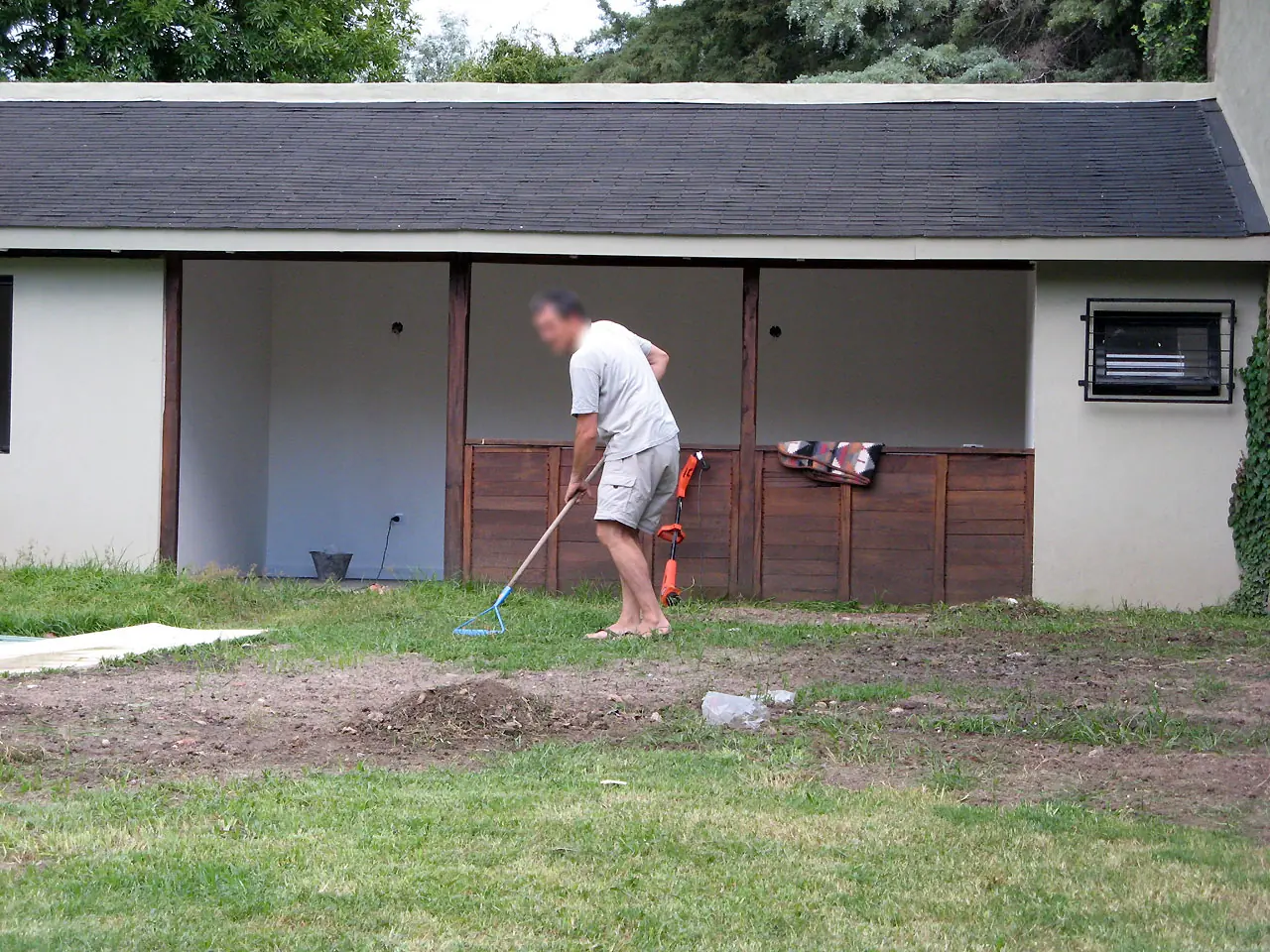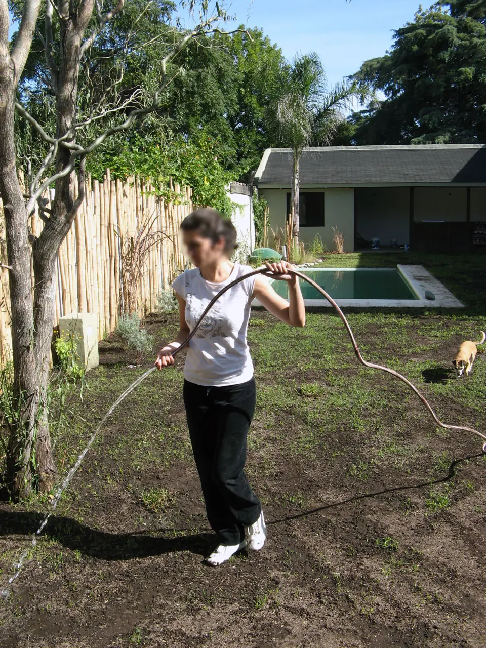 22b y c) Mi esposa regando desde dos vistas desde el fondo y desde el frente. Ven como si empezaramos de nuevo con el pasto.