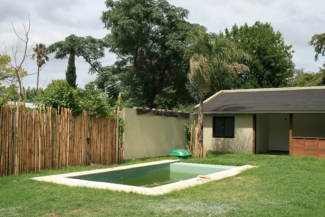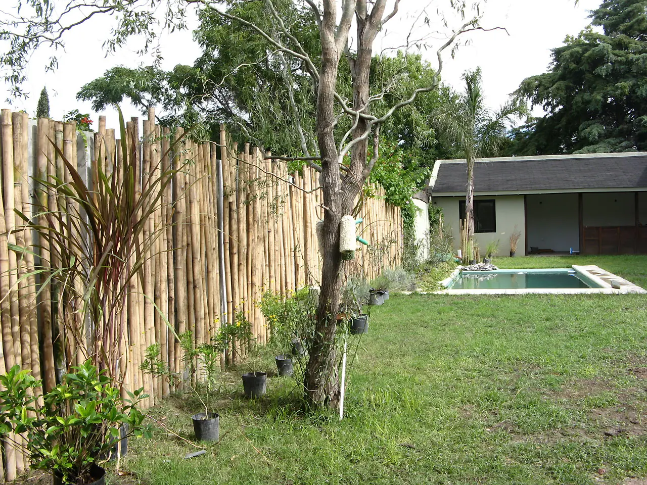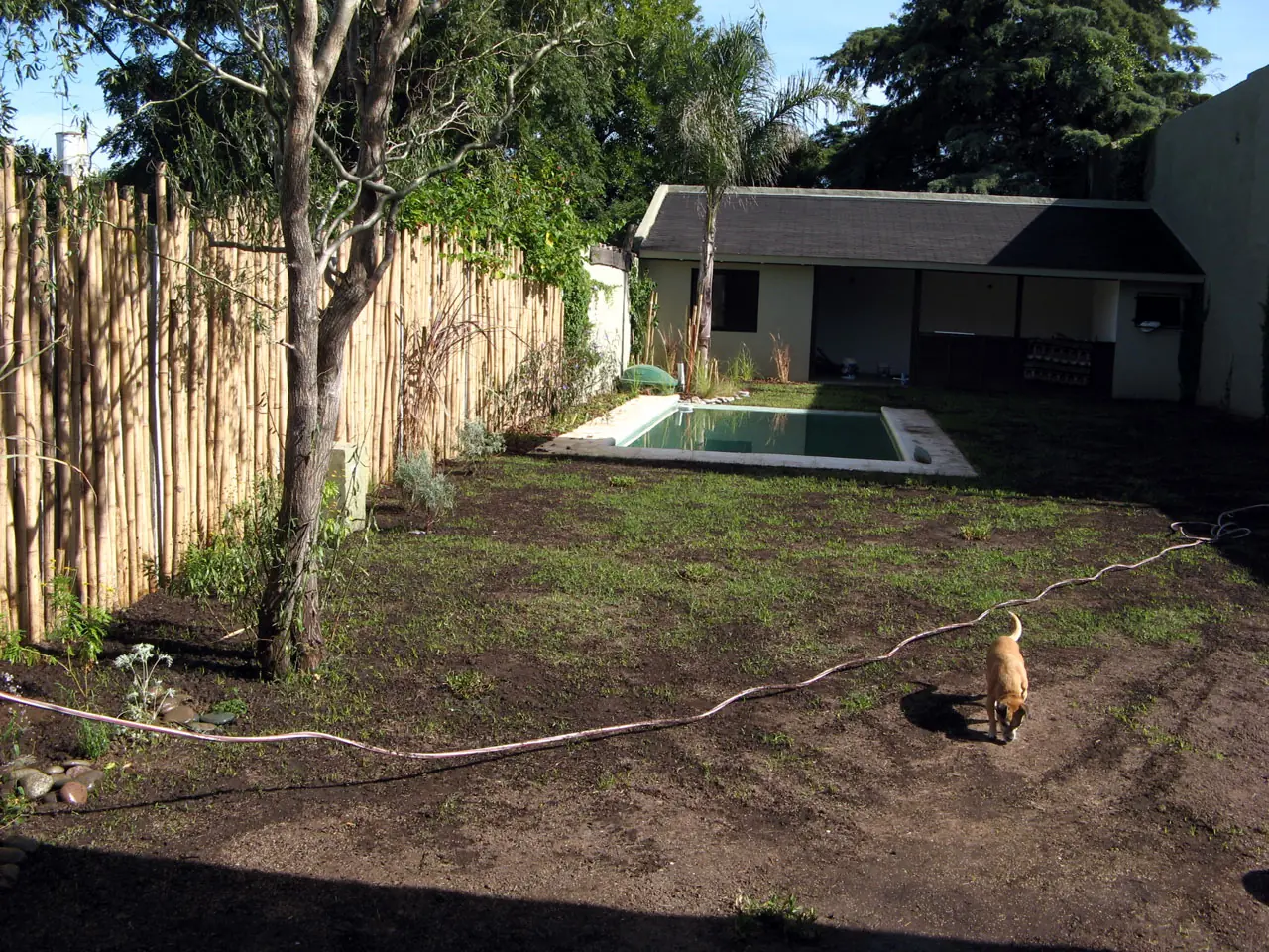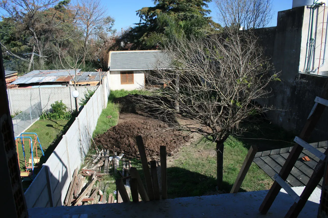 1) Esta foto es mirando al quincho. Vemos la palmera en el medio (a quien se le ocurre) y esos palos al lado era donde iba a ir la pileta.