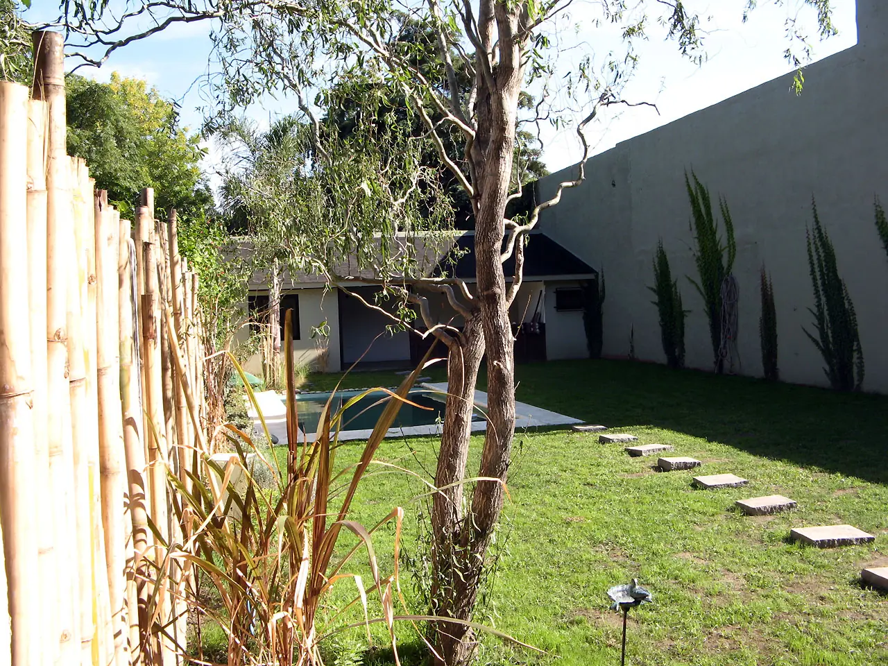 23) Presentamos el camino de piedras. Se puede ver como avanza la enredadera en la pared y como creció el pasto. Ya sería el primer año