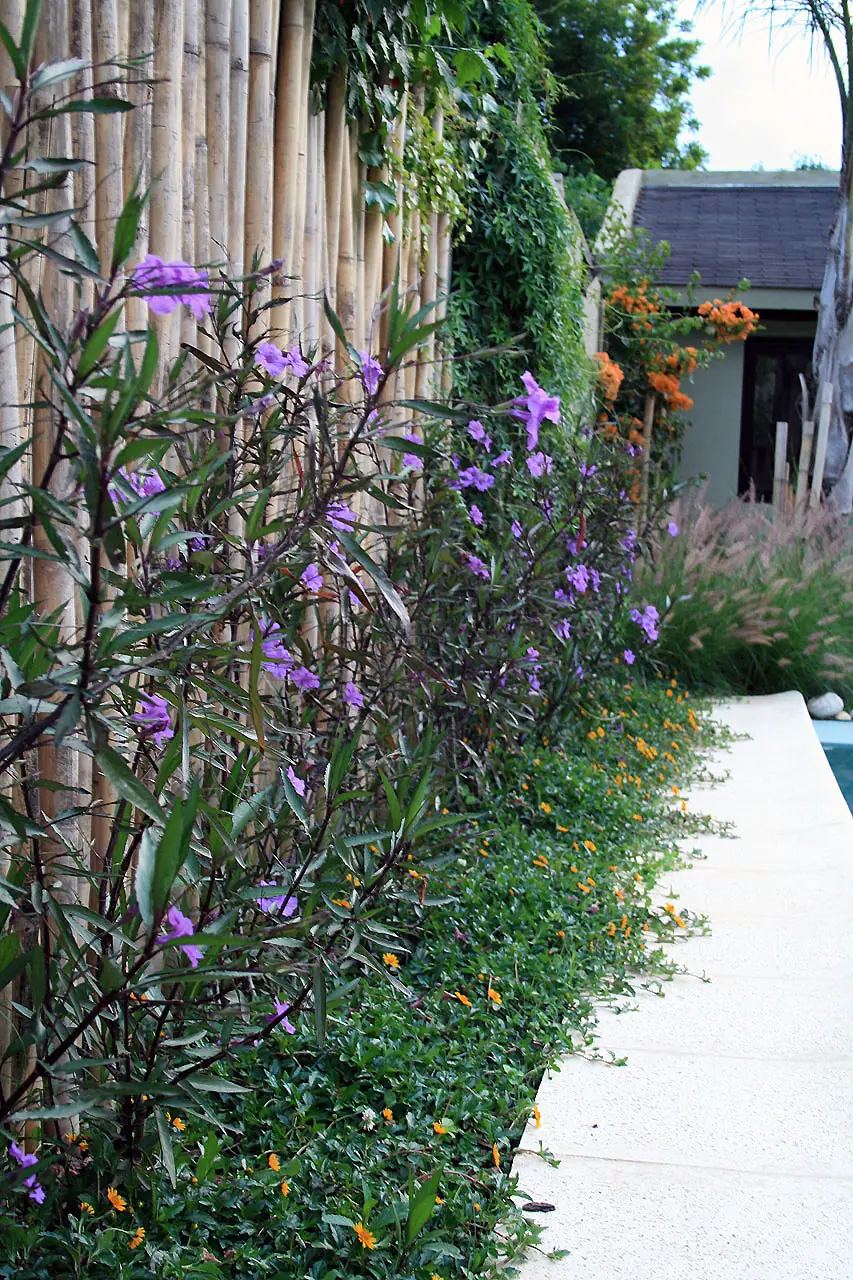 19 b, c 20, 21 y 22 se pueden ver las plantas que pondríamos con gramíneas en el fondo y plantas con flores al lado de la pileta y lavandas.